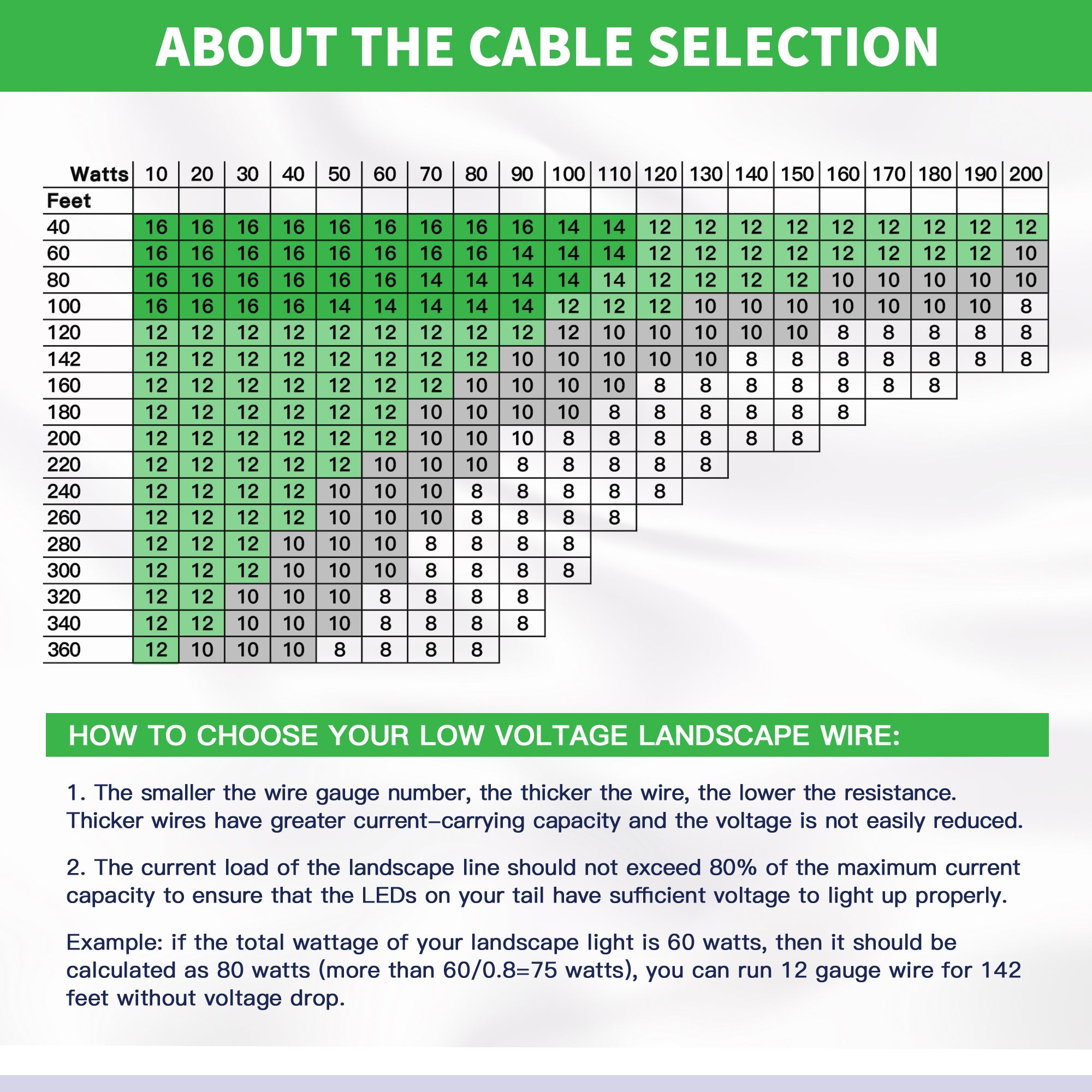 For example, if the transformer is 150W and each bulb is 5W, then 24 fixtures can be installed (150 x 80% ÷ 5).