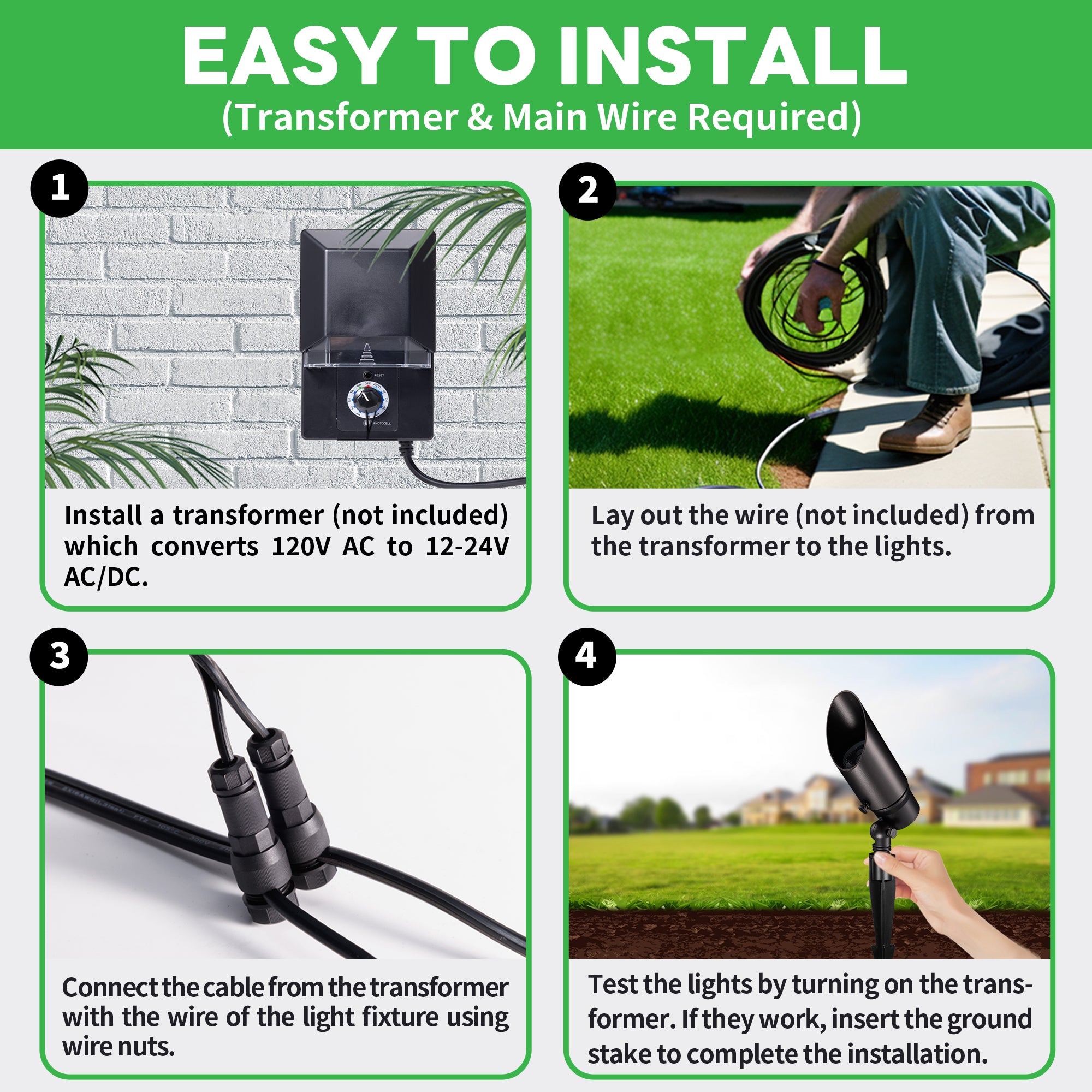 - Power & wiring: Sum total watts, choose a 12V transformer with ~20–30% headroom; use 12/14 AWG for longer runs and balance near/far fixtures to reduce voltage drop.