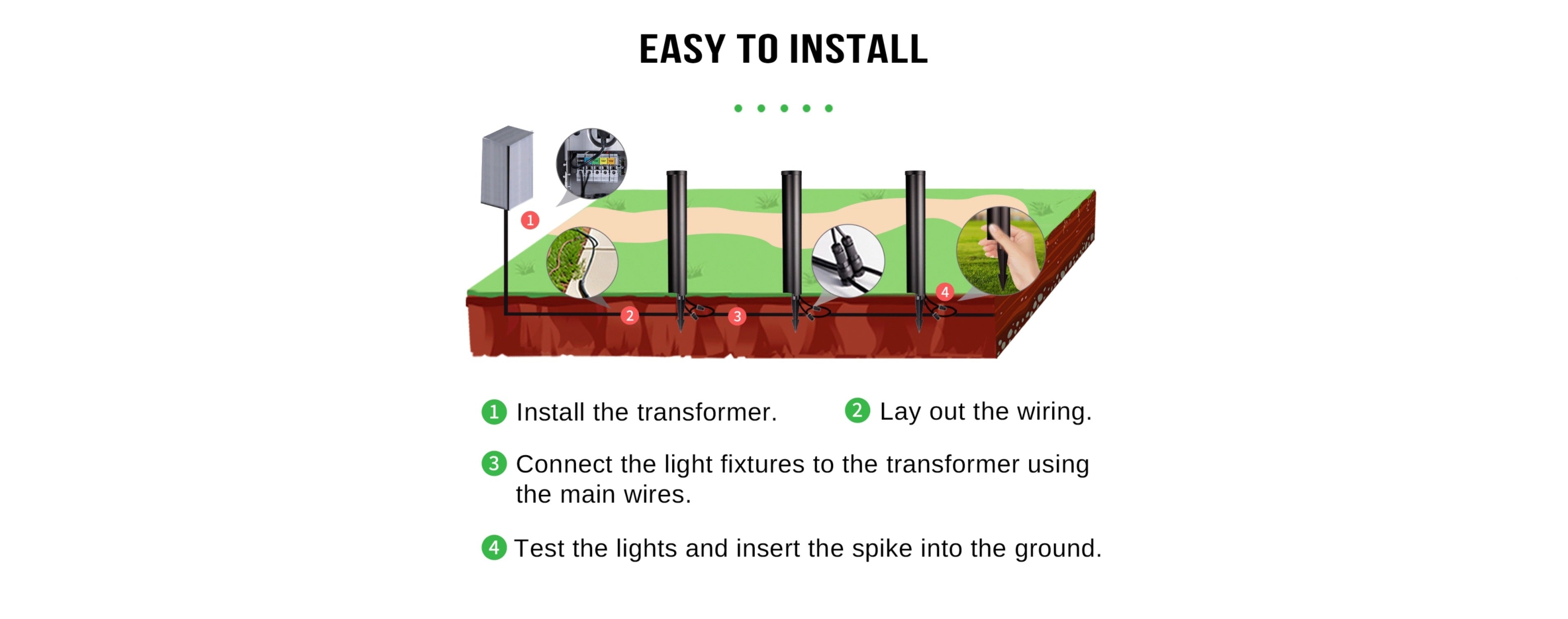 Our path lights come with connectors. However, you need to buy extra wires to get them connected to a transformer.