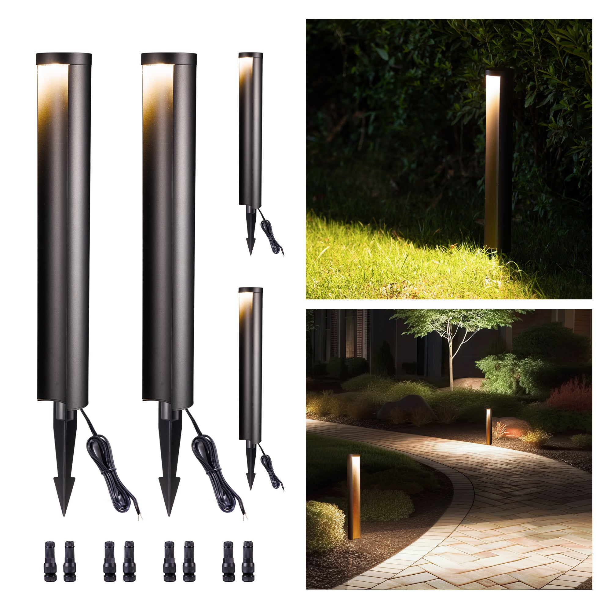 ✅Worry-free Outdoor Activities: These walkway lights run on 12v-24V AC/DC low voltage. Safe for kids and pets. Transformer required. Offer anti-glare down lighting for pathway, path, walkway, garden, driveway, sidewalk, yard, patio, backyard, lawn, planter, plants, stair, entrance, step, coachyard, flowerbed, roadside, courtyard, and shrubs.