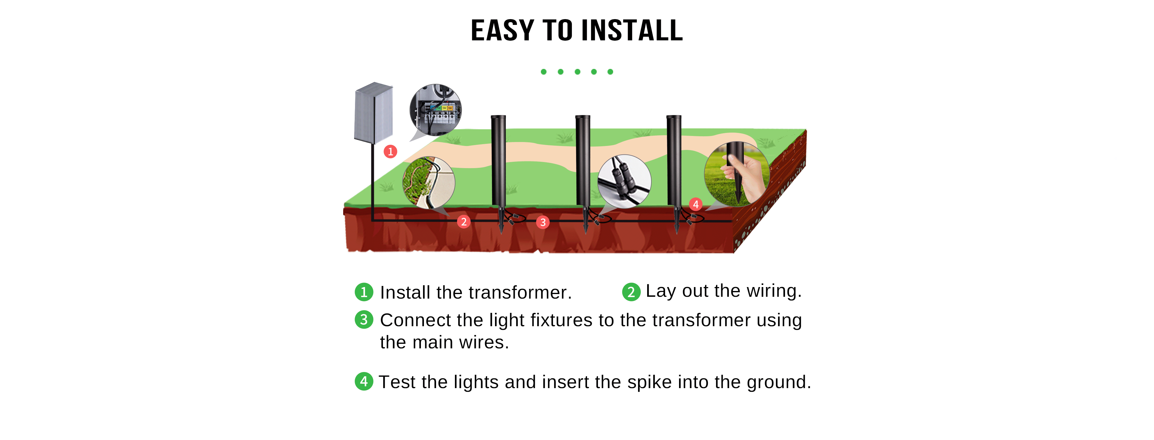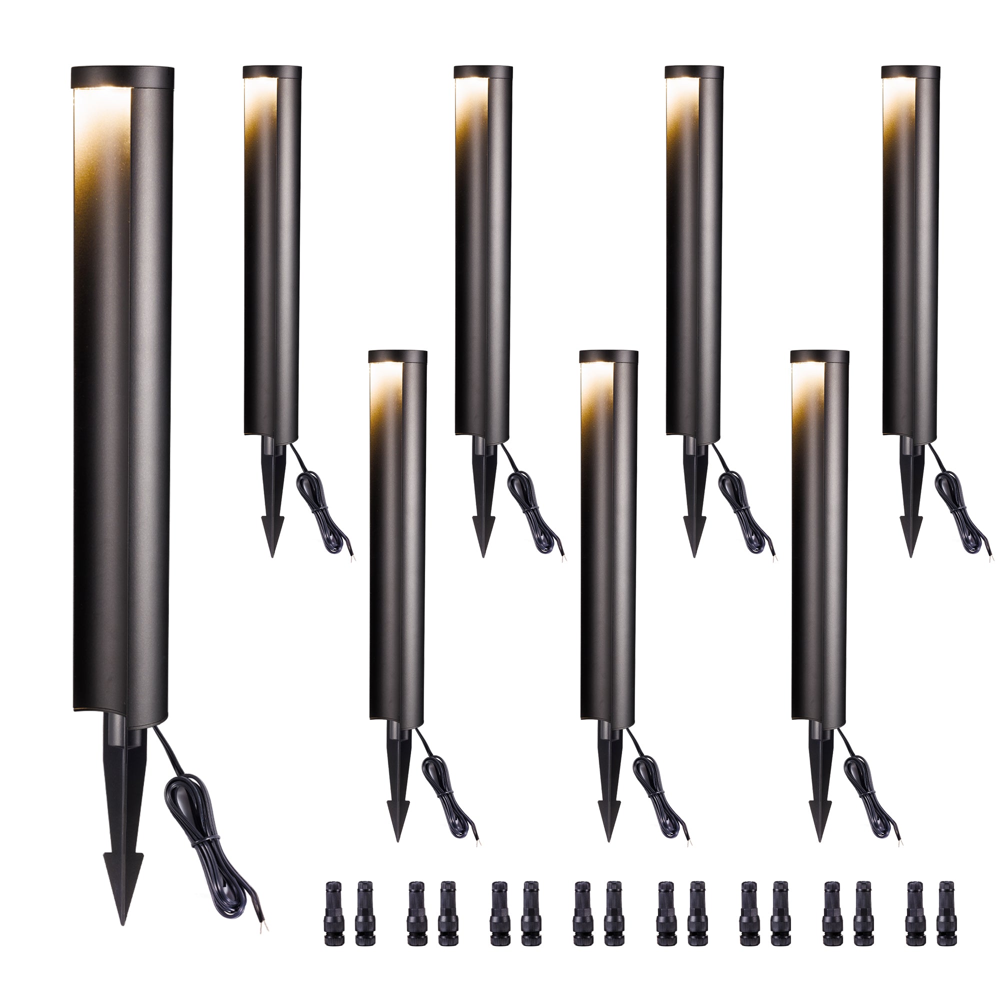 Our path lights come with connectors. However, you need to buy extra wires to get them connected to a transformer.