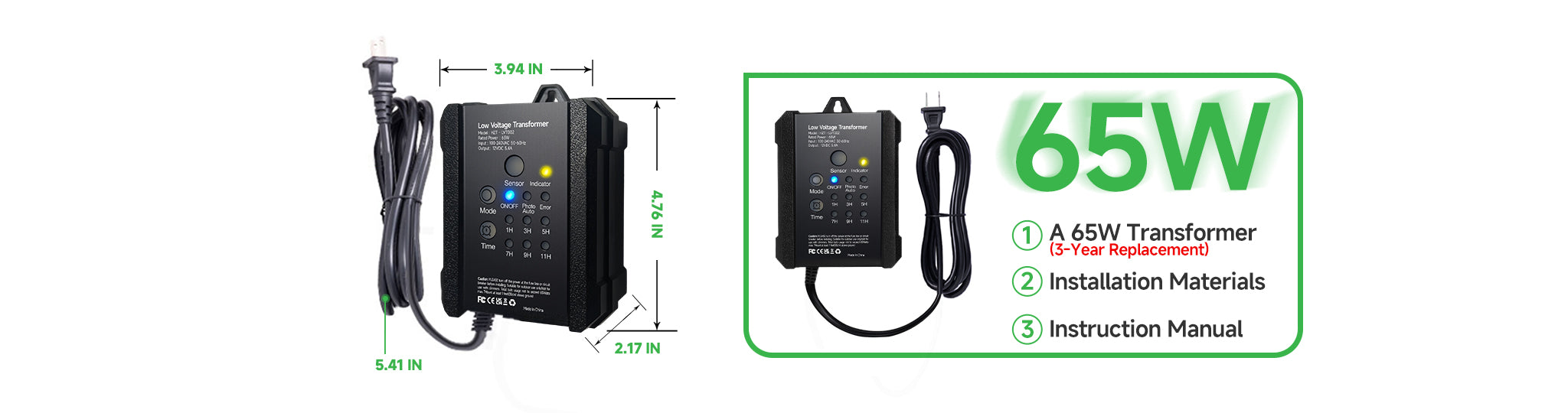 Varmtalys 65W Low Voltage Transformer with Timer & Photocell, Outdoor Landscape Lighting Power Supply