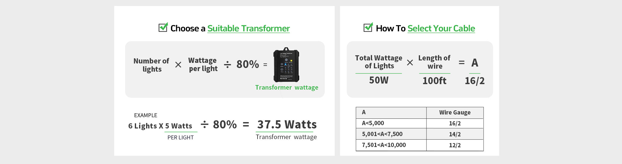 A: It depends on the wattage of your lights. For example, a 65W transformer can handle about 10 lights at 5W each. Always make sure the total wattage of your lights is within 80% of the transformer’s capacity.